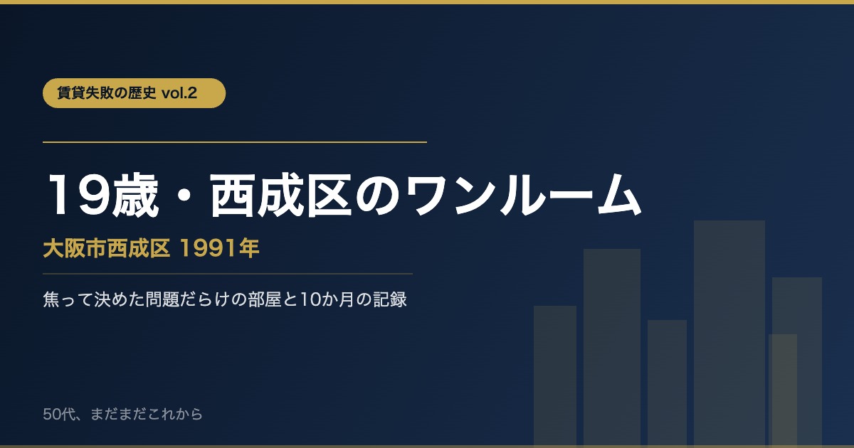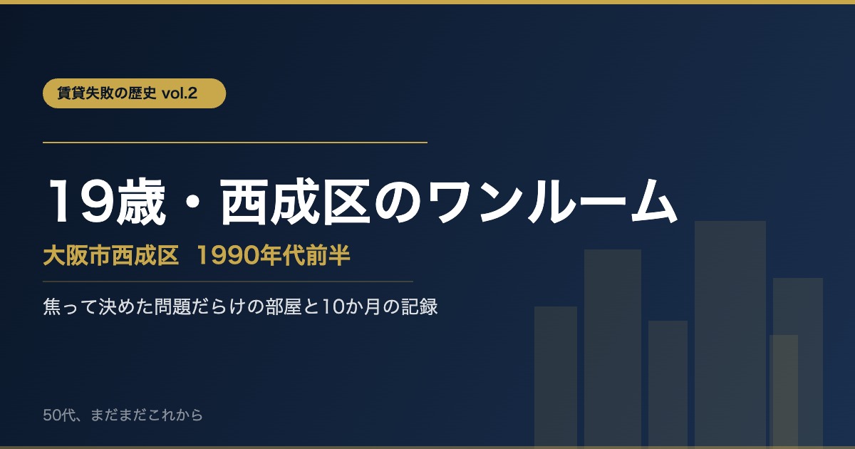 18歳で親元を離れて単身大阪で生活をすることに。住まいは当時の会社が用意してくれた大阪堺市のワンルームマンション。その会社もわずか7か月で退職をしたので、次なる住まいを急遽探す状況となりました。